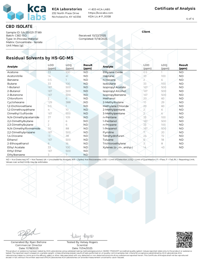 Because it contains only CBD, it’s a great choice for those formulating THC-free products or customizing their own cannabinoid ratios.