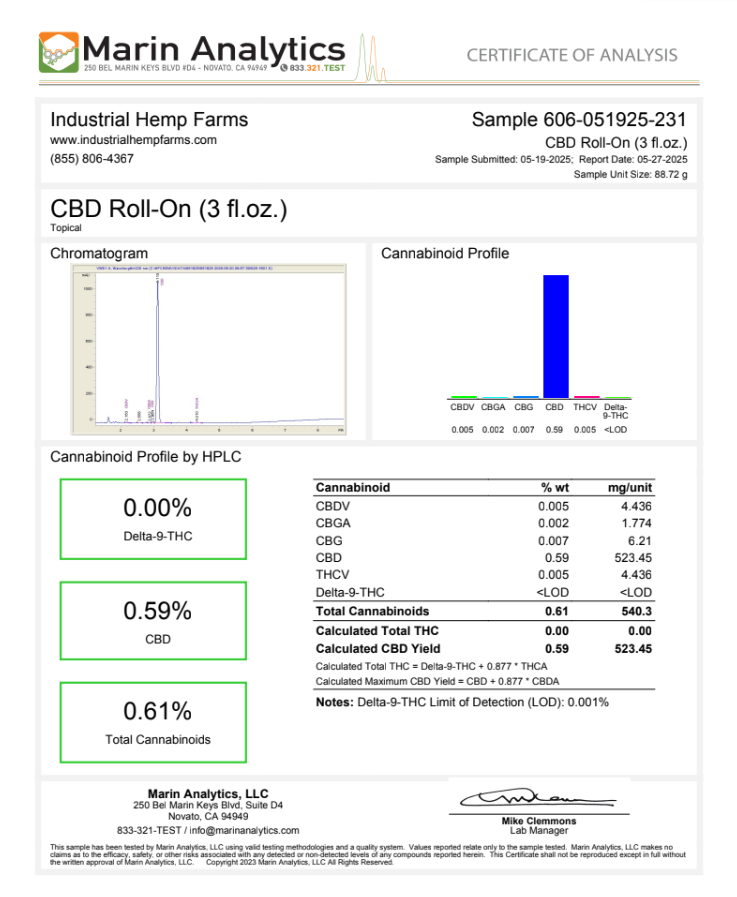 Less than 0.3% THC, compliant with the 2018 Farm Bill