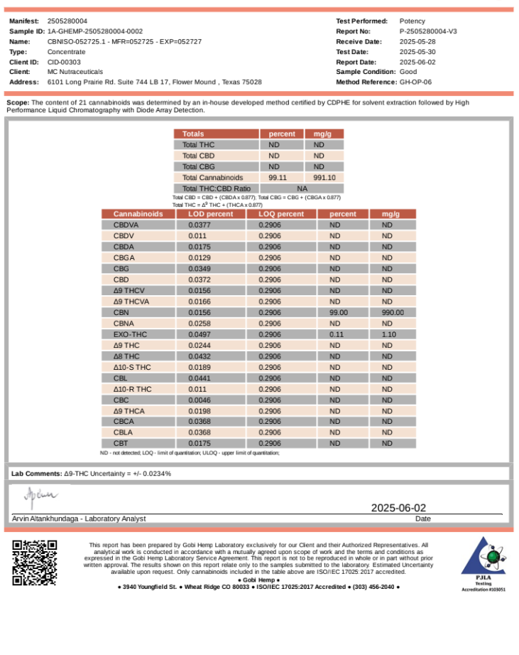 Because it’s pure and flavor-neutral, CBN isolate works well in oils, capsules, tinctures, or custom hemp-based creations. It dissolves easily and allows for precise, controlled dosing. As a result, it’s a popular choice for users who want flexibility without THC exposure.