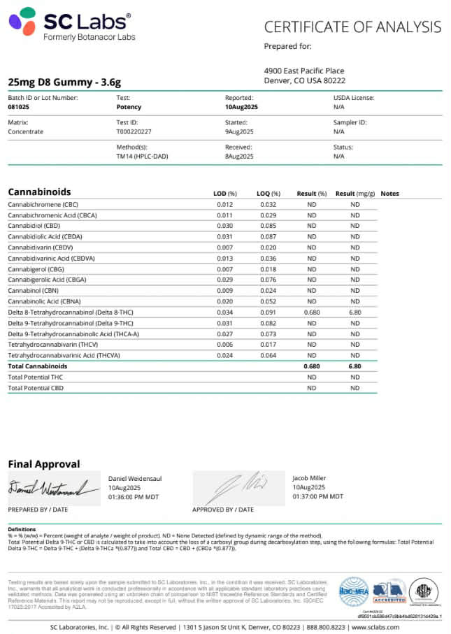 We manufacture each batch with consistency and quality in mind—then verify it with third-party lab testing to ensure accurate cannabinoid content and clean formulation.