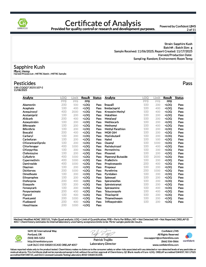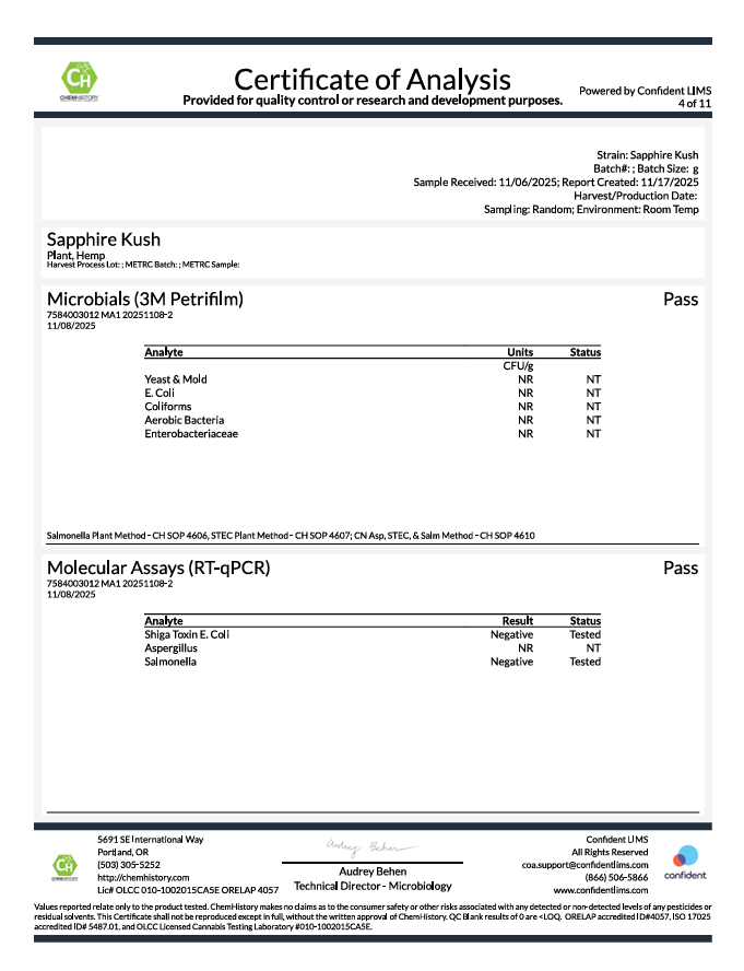 Verified Lab Results (Per COA)