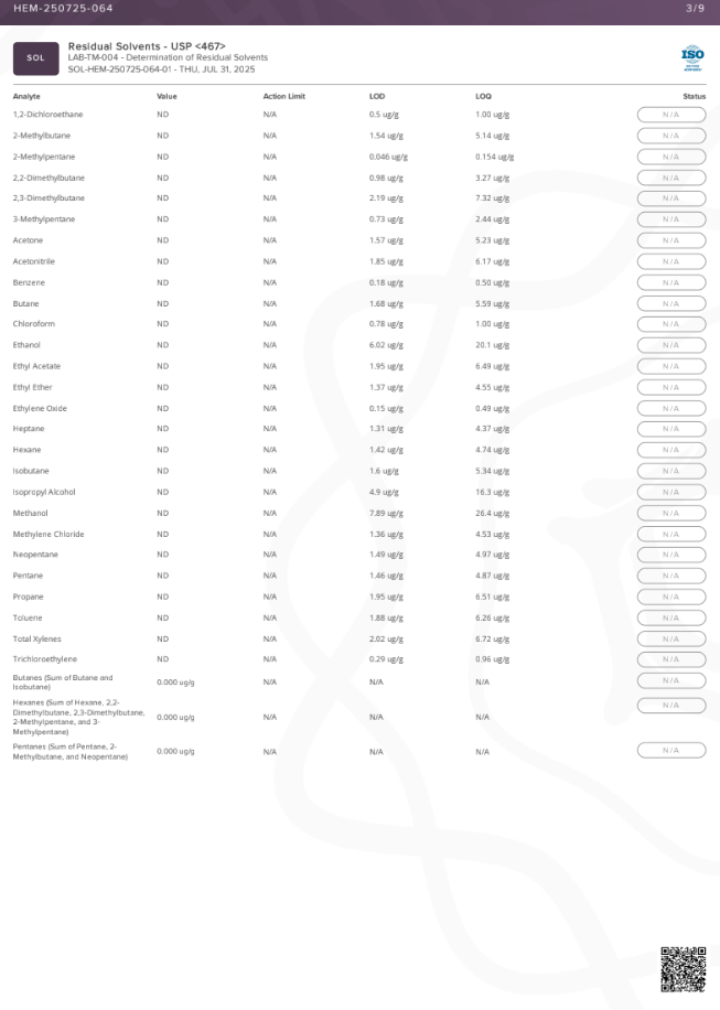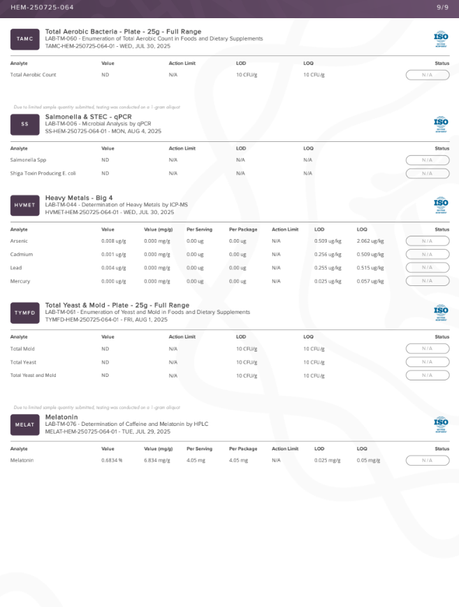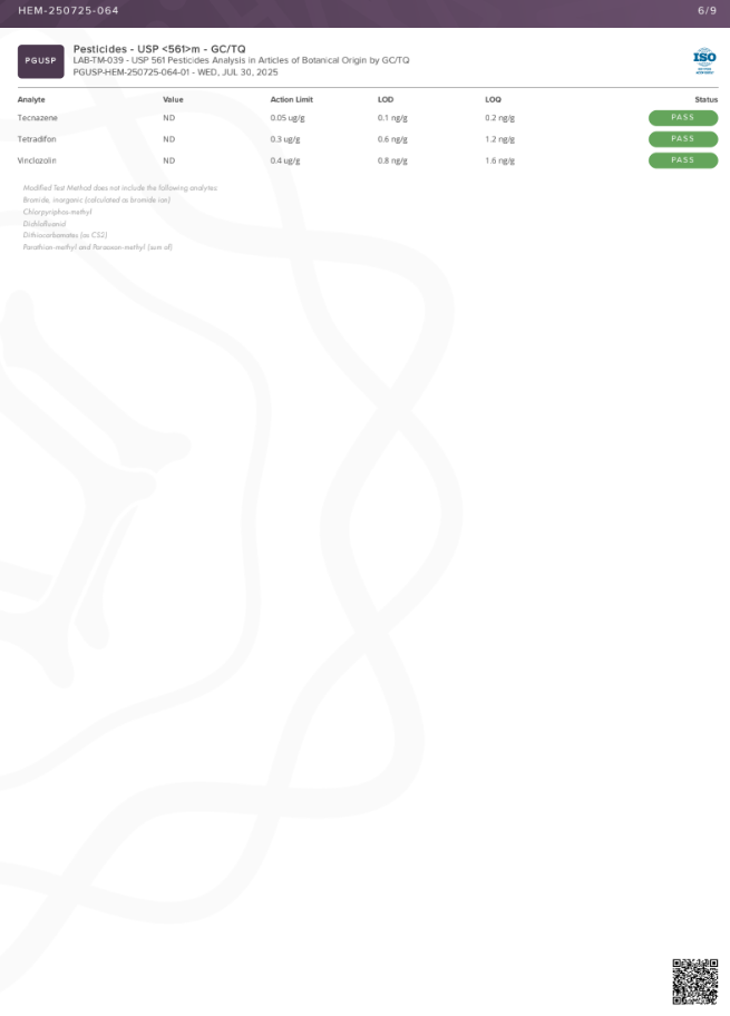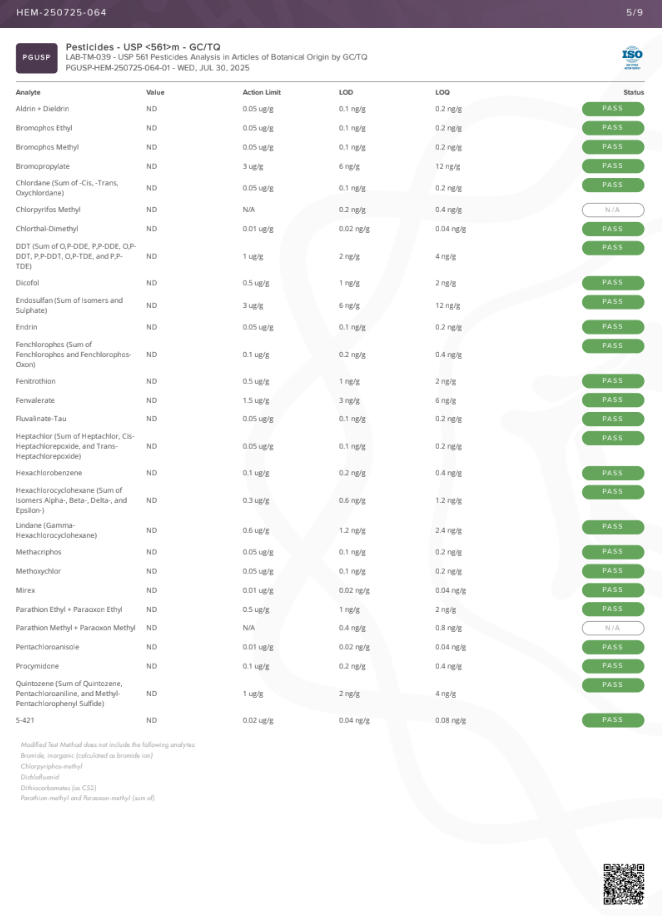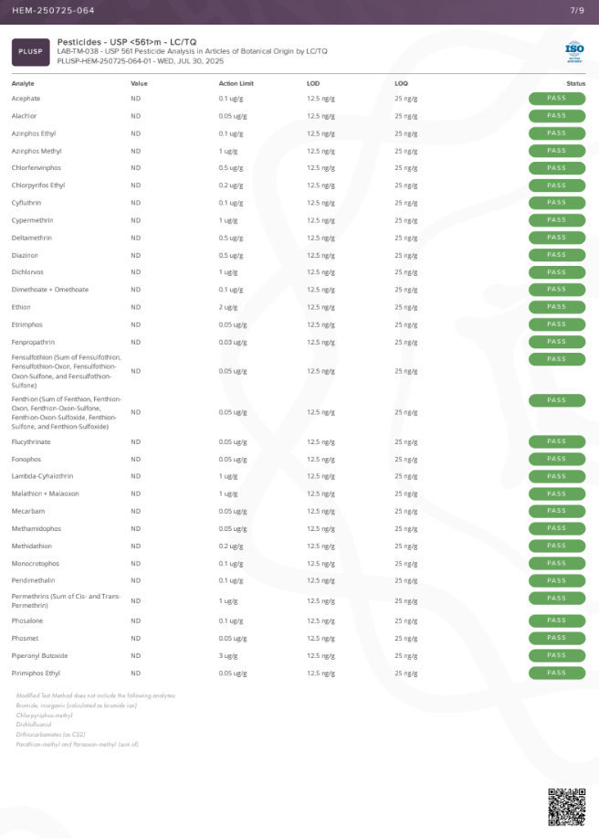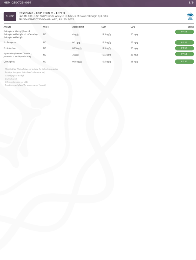 • Delta 9 THC Content: <LOQ
