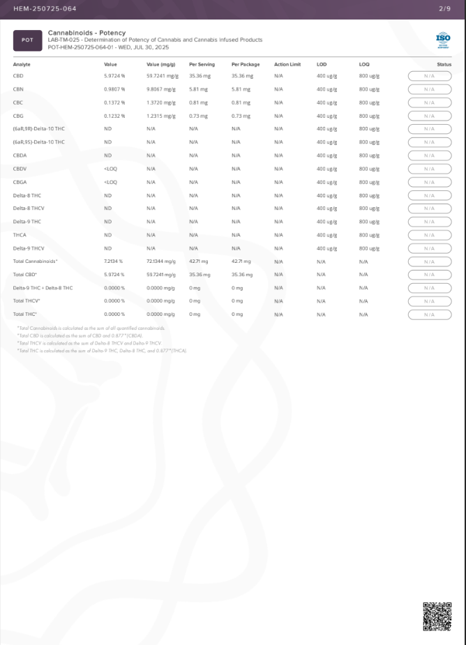 • Third-party lab tested for cannabinoid content and purity